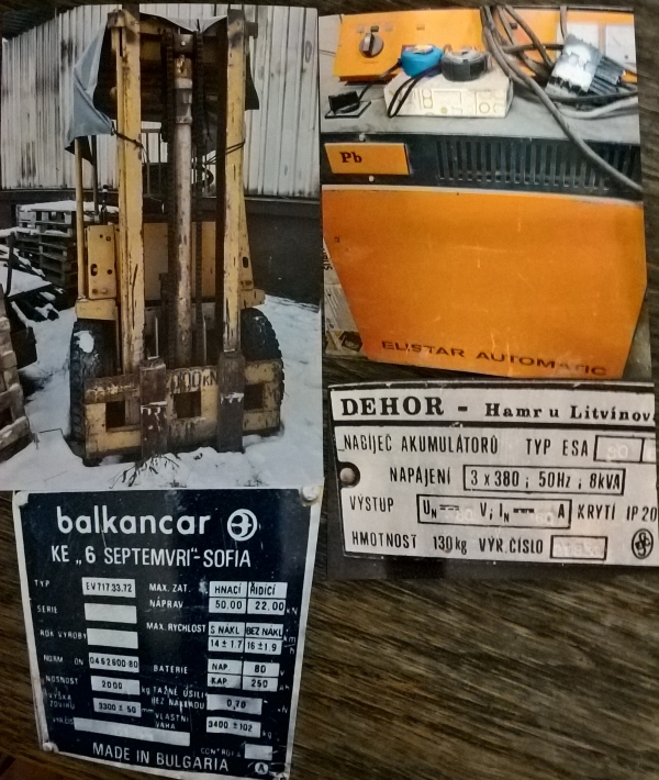 Elektrický VYSOKOZDVIŽNÝ VOZÍK - předělaný na běžné autobaterie. Stávající baterie nefunkční, s novými vozík plně funkční + NABÍJEČKA baterií DEHOR [10.000,-]